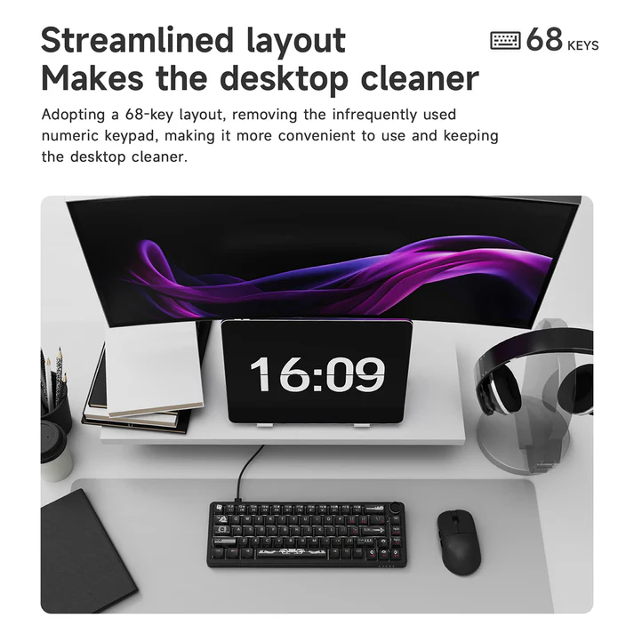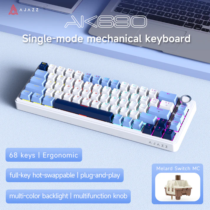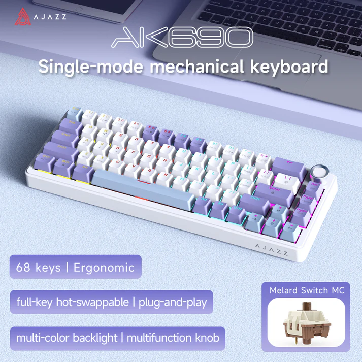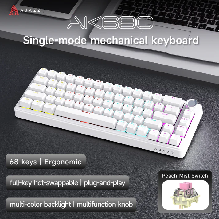 The AJAZZ AK690 features a 68-key compact layout, which saves desk space while still keeping essential keys such as arrow keys and function shortcuts.