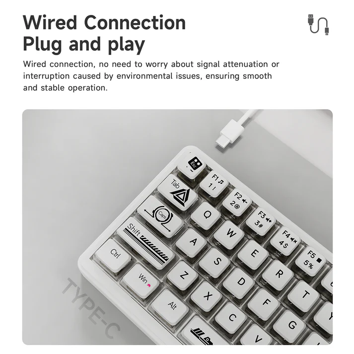 The keyboard uses a USB Type-C wired connection, providing a stable and fast input response without delays. Wired keyboards are preferred by many gamers because they eliminate wireless latency and battery concerns.