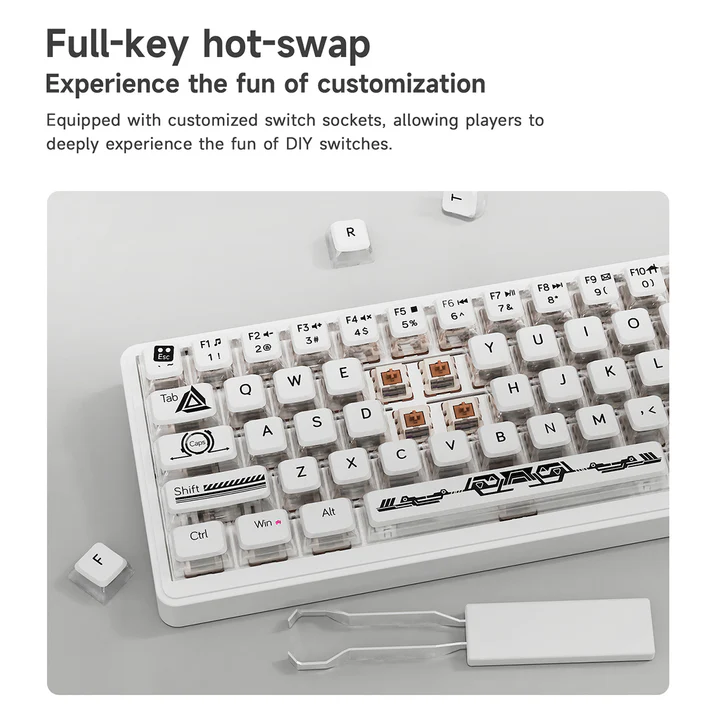 Some versions of the keyboard also support hot-swappable switches, allowing users to change switches easily without soldering.