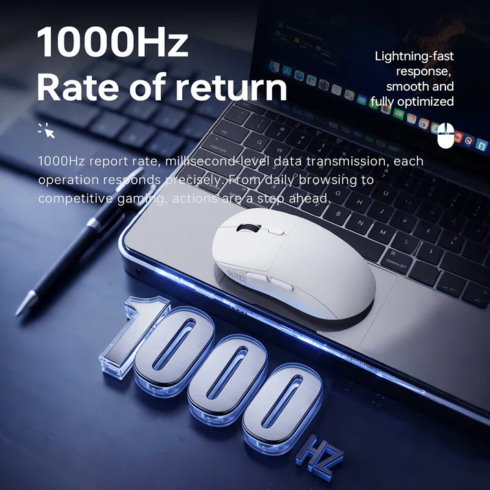 The mouse supports a 1000Hz polling rate, ensuring that every movement and click is registered instantly. This high polling rate significantly reduces input delay, giving gamers faster reaction times during competitive gameplay.