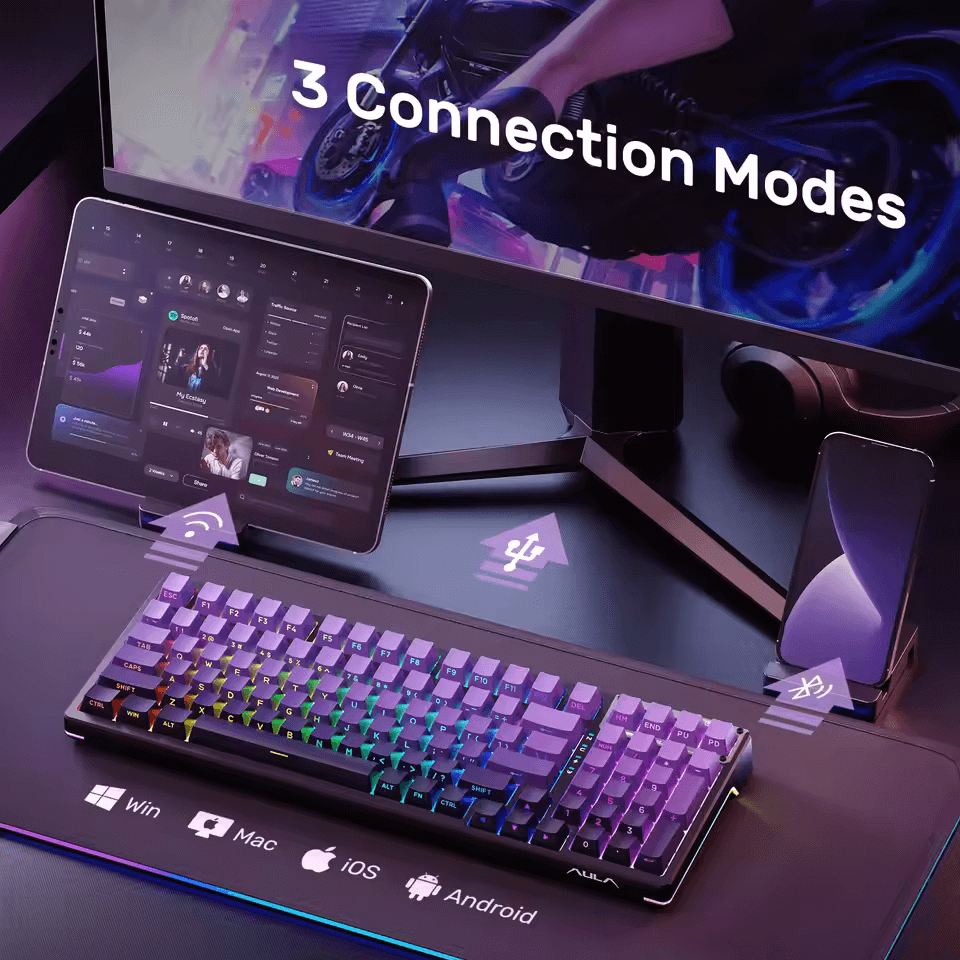 The AULA F98 is engineered for performance and versatility. Whether you’re gaming, streaming, or working, it adapts to your setup instantly.