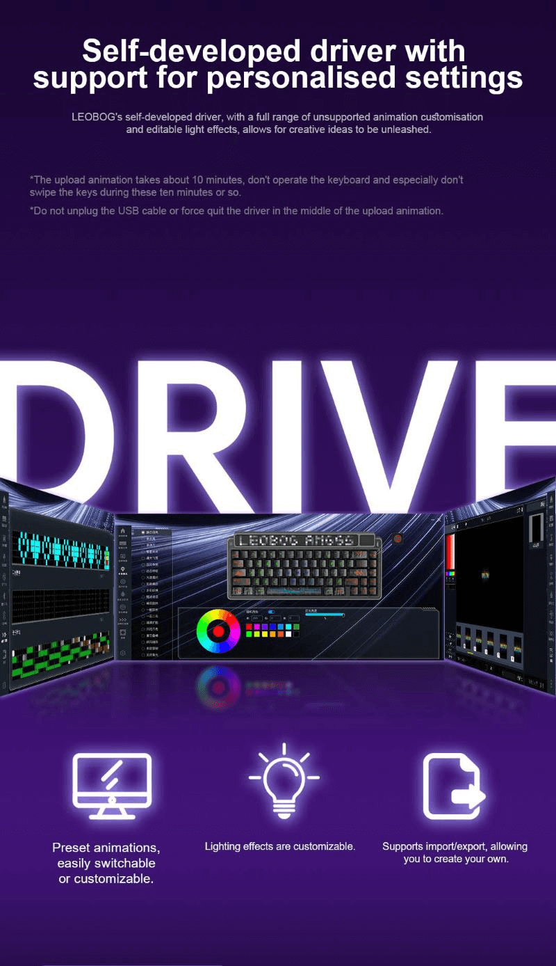 Equipped with smooth and responsive LEOBOG switches that offer: