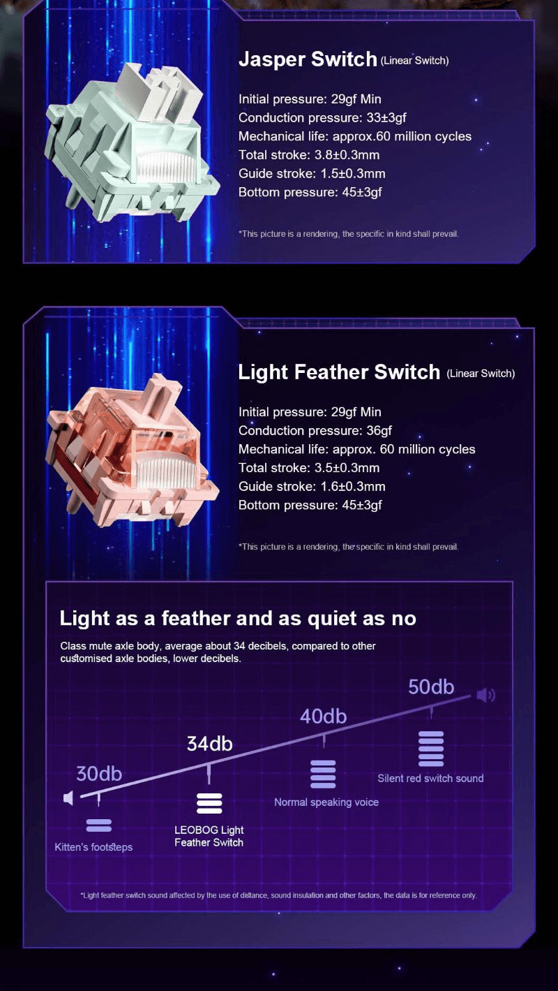 Switches: Hot‑swappable LEOBOG linear (supports 3‑pin & 5‑pin)