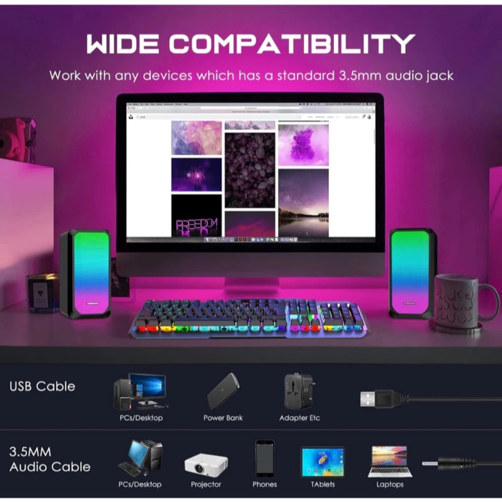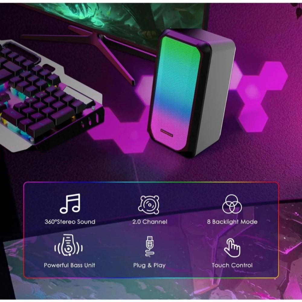 • Speaker Type: Wired desktop gaming speaker (2.0 stereo)